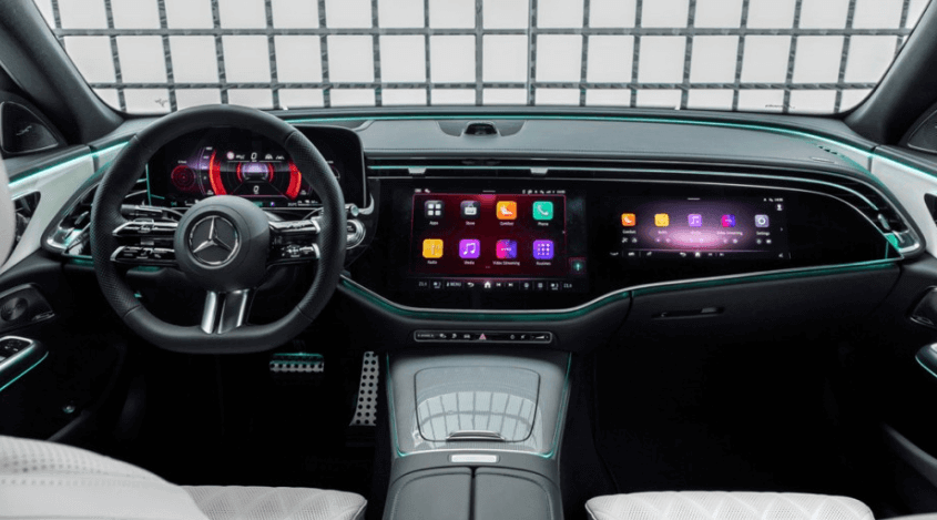벤츠 e클래스 풀 체인지 MBUX 슈퍼 스크린은 E300 이상 모델에만 옵션으로 제공될 예정이며, D컷 나파가죽 핸들은 AMG LINE에만 적용됩니다.