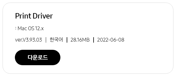 아래 다운로드 버튼을 누르시면 맥 버전의 삼성 SL-M2030 모델의 드라이버를 다운 받으실 수 있습니다.